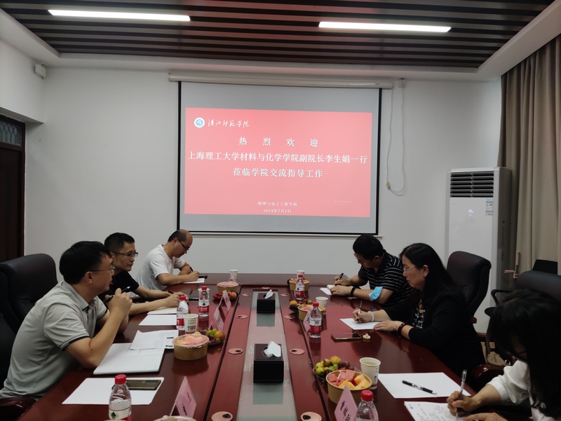 7月2日下午,上海理工大学材料与化学学院副院长李生娟、材料成型及控制工程系主任陈泽中、博士生导师曾祥琼等一行来我院进行洽谈交流。交流会在崇文楼A503会议室举行,beat365官方网站副院长欧修龙、化学与环境工程学院副院长丁宗庆、应用化学专业教师周佳、电气工程及其自动化专业程文杰博士参会,会议由副院长欧修龙主持。
