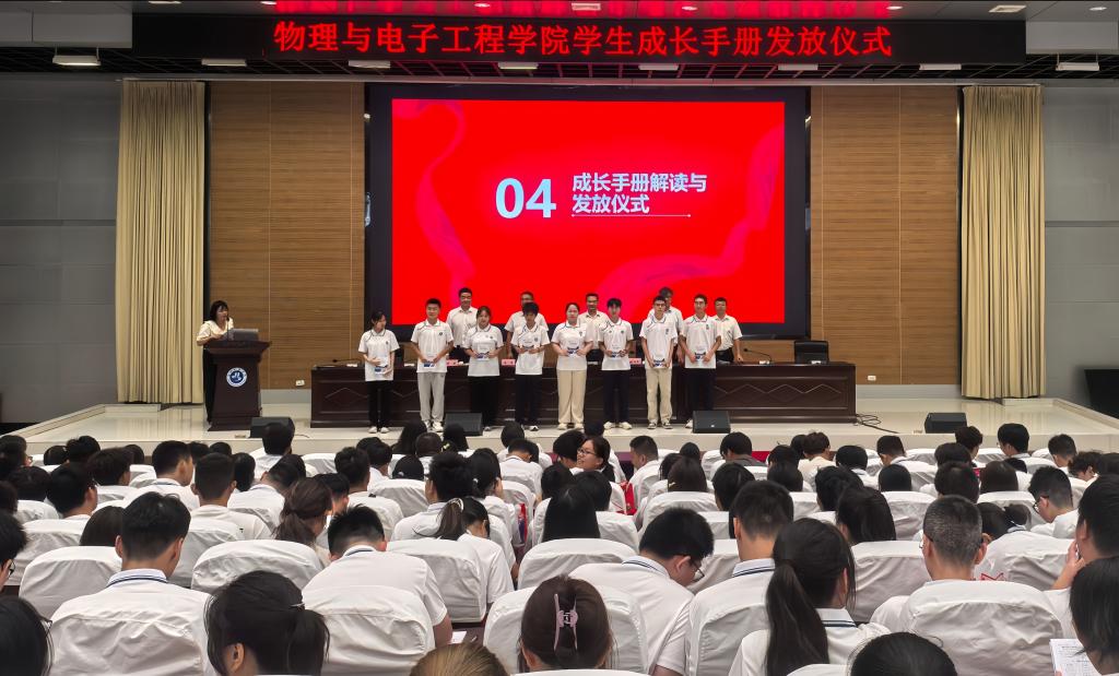 9月13日上午,beat365官方网站在图书馆学术报告厅举行2024级新生《学生成长指导手册》发放仪式,学院领导班子、部分专任课教师和班主任、全体辅导员和2024级新生参加。
