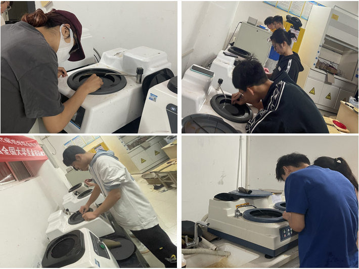 本次比赛完全按照国赛标准进行,参赛选手需在30分钟内对金属样品的指定端面完成磨制、抛光、腐蚀和显微镜观察等操作。经过紧张而激烈的比赛最终赛出一等奖2名,二等奖3名,三等奖5名,他们经过进一步培训后将于7月15-16日在武汉工程学院参加湖北省省赛。