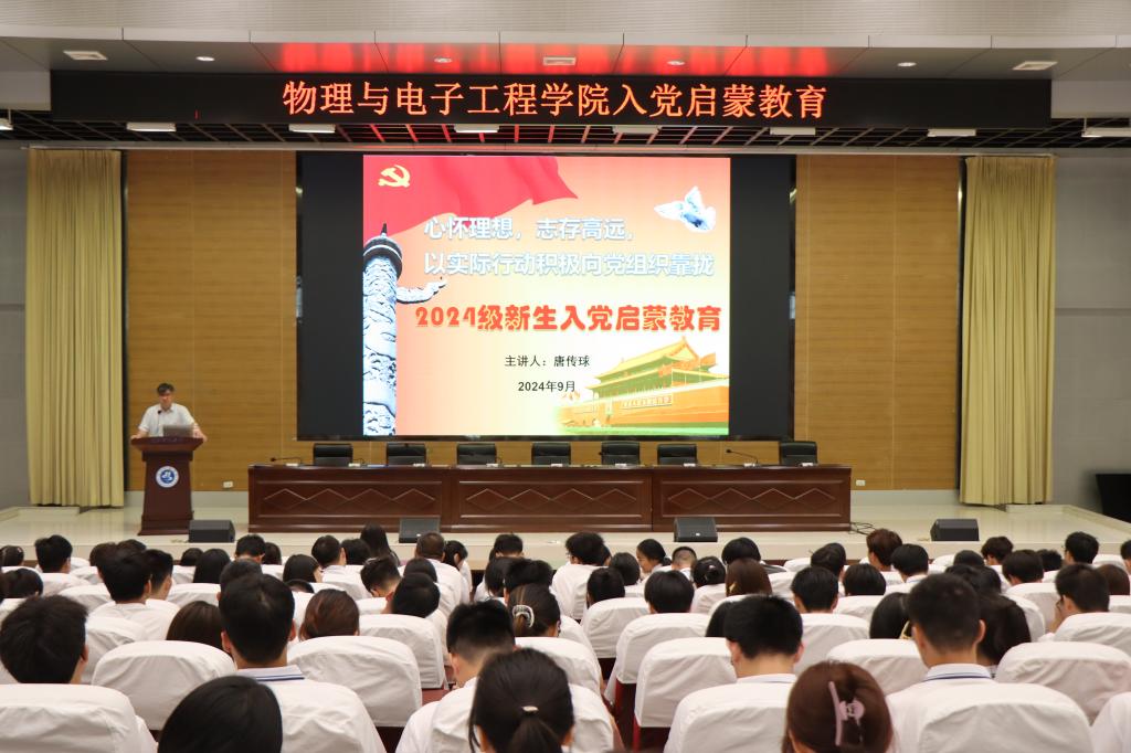 为加深我院2024级新生对中国共产党的认识,提高新入学大学生的思想觉悟,引导其积极主动向党组织靠拢。9月13日上午,beat365官方网站在图书馆学术报告厅开展了2024级新生入党启蒙教育,本次活动由院分党委书记唐传球和学生党支部书记王超然主讲。