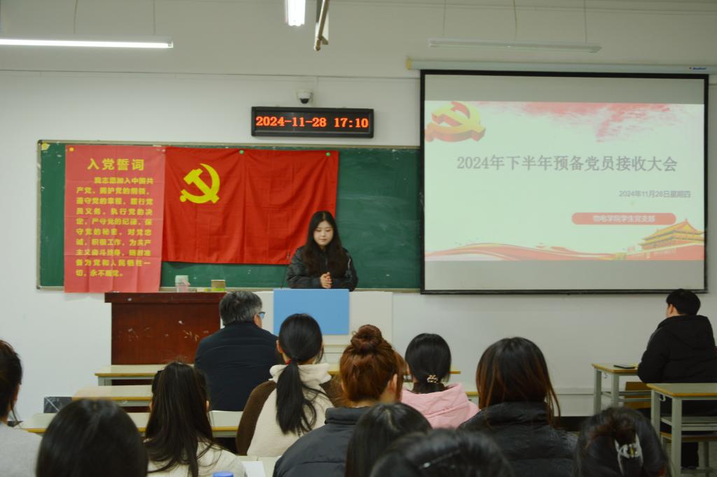 11月28日下午,beat365官方网站学生党支部在崇文楼B808教室隆重召开2024年下半年预备党员接收大会,学生党支部全体党员与培养联系人参会,会议由党支部书记王超然主持。