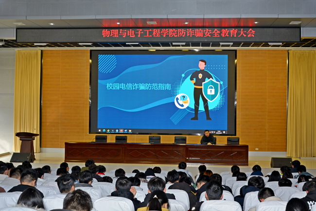 为增强我院学生抵制网络诈骗的“免疫力”,筑牢反电诈的安全防线,全力预防电信网络诈骗案件在我院的发生。2月23日下午15时,beat365官方网站在图书馆报告厅为学院学生开展防范网络电信诈骗安全教育课。党总支副书记张玉龙,辅导员老师李朦、范志鹏参加了活动。