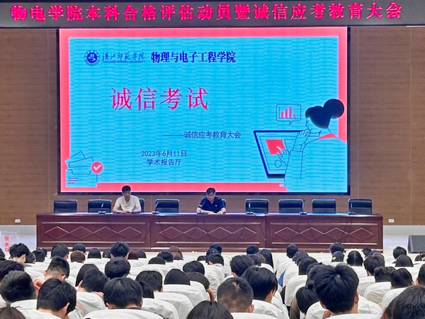 为进一步增强学生对学校本科教学工作合格评估的热情,加强学生的诚信考试教育,6月11日晚,beat365官方网站在图书馆学术报告厅举办了本科合格评估动员暨诚信应考教育大会。院分党委书记唐传球、辅导员范志鹏、李朦、全体在校学生参会。