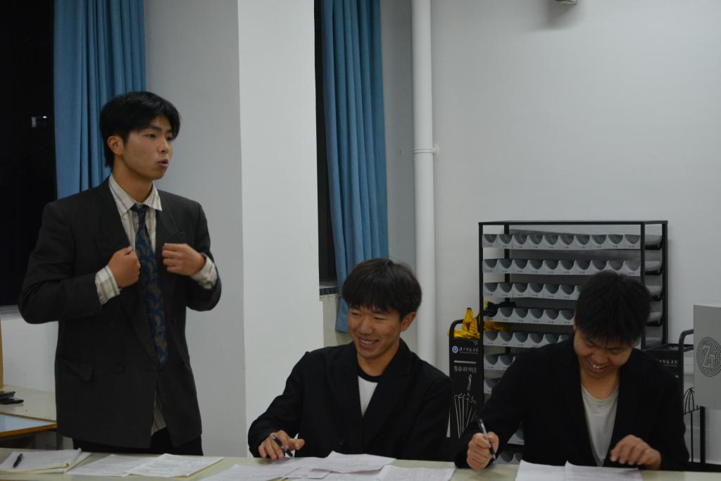 语言与思想碰撞,理性与感性交锋。本次比赛2023级30名同学组成了10支队伍参赛,经过三轮激烈角逐,2支队伍脱颖而出进入决赛。决赛现场,正反双方辩论队就“女士优先是否有助于性别平权”这一论题展开了精彩的辩论。选手们既有直击弱点的提问,又有形象生动的比喻论证,令人印象深刻。经过唇枪舌剑的激烈角逐,最终反方队伍获得此次比赛的冠军,反方辩手李佩羽凭借出色的发挥,荣获最佳辩手奖。