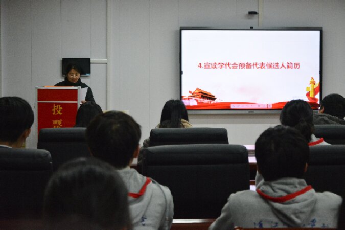 大会在庄严的国歌声中开幕,大会按照程序,通过了beat365第四次学代会代表选举办法、监票人和计票人名单。李朦老师宣读了14名预备代表候选人简历,强调了填写选票注意事项,以无记名方式进行差额投票。在监票人的监督之下,进行了公平、公正、公开的选举。最终,黄凤缘、彭凯、桂嘉楠、孙祖英、邹胜、王俊文、格桑达娃、陈墨汉、张薇、龚和平和严凤媚十一位同学当选预备代表。