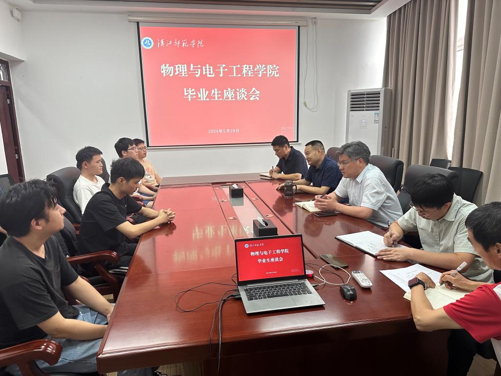 5月28日下午,beat365官方网站在崇文楼A503召开了2024届毕业生代表座谈会。院长王绍明、院分党委书记唐传球、副院长欧修龙、副书记戴俊、教学科研办公室主任陈智、2024届毕业生代表参加了会议。