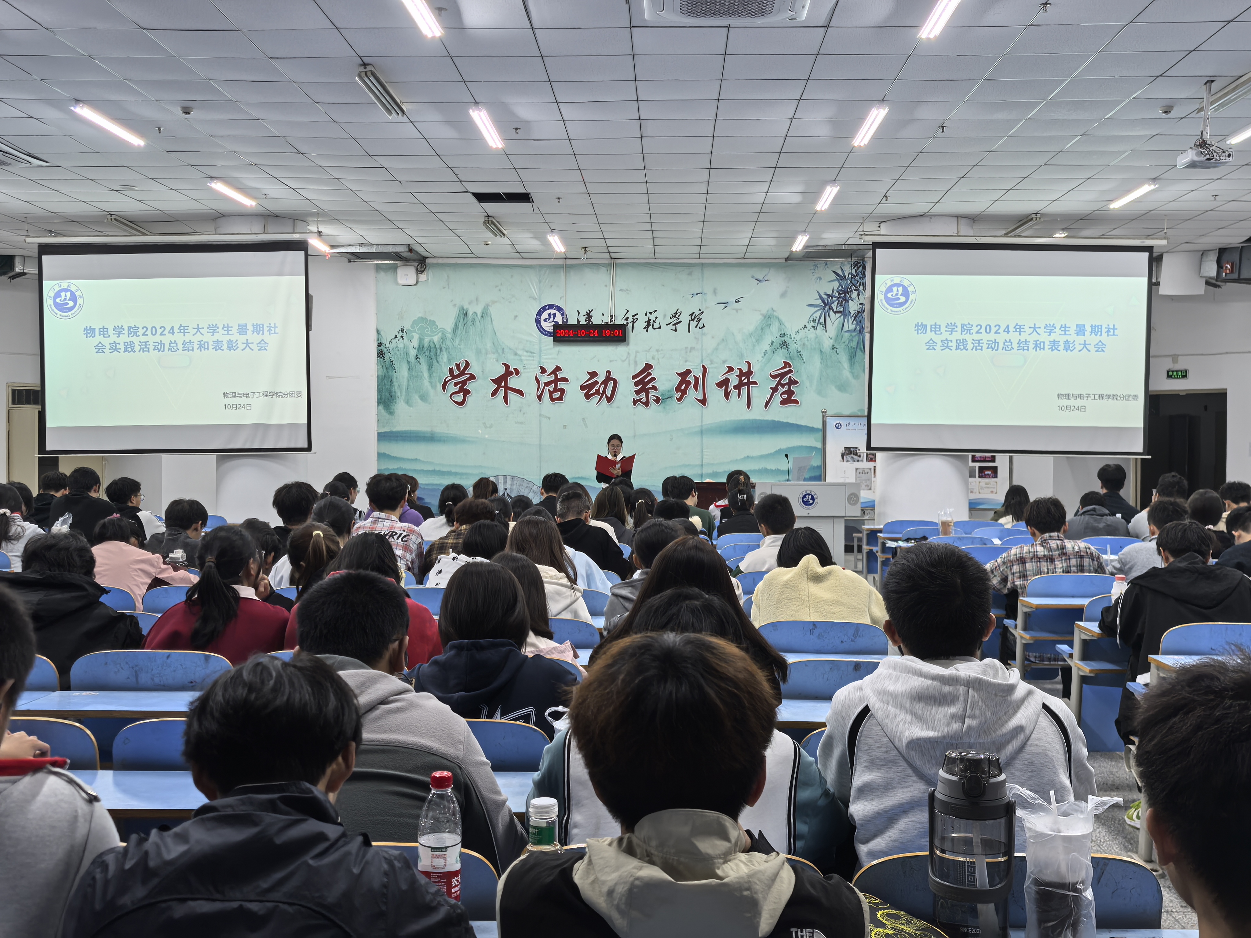 10月24日晚,beat3652024年暑期社会实践总结暨表彰大会在崇文楼C201举行,院分党委副书记戴俊,分团委负责人范志鹏,辅导员田梦谣、贺培参加会议并担任评委,各实践团队成员和200余名2024级学生现场观摩学习。