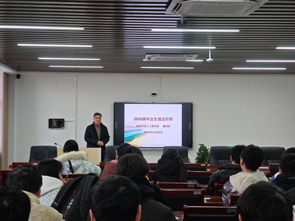为深入推进2025届毕业生就业工作,促进毕业生高质量充分就业,12月23日下午,beat365官方网站在崇文楼B809组织召开2025届毕业生就业动员会。院分党委书记唐传球、副书记戴俊、辅导员贺培及2025届毕业生参加会议。