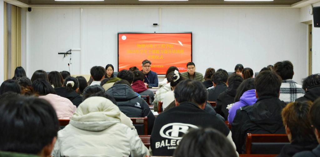 为深入学习贯彻习近平总书记关于青年工作的重要思想,锻造一支综合成绩好、作风纪律硬、能力素质强的学生干部队伍,3月16日晚,beat365官方网站在崇文楼B809举办2025年学生干部能力提升培训班开班仪式。学院分党委书记唐传球、副书记戴俊,学工办主任尹诗雅,辅导员田梦谣、贺培,学院各学生组织正式干部,2023级和2024级各班团支书、班长及学习委员参加开班仪式,开班式由辅导员田梦谣主持。